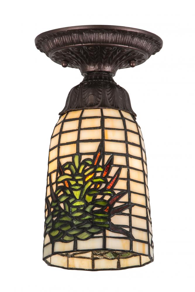 Woodland Brown Pinecones appear to flourish on a Beige geometric grid on this elongated handcrafted art glass shade. The simple but elegant Mahogany Bronze hardware makes this ceiling fixture suitable for a country cabin or urban condominium. This shade is created using the famous Meyda Tiffany copperfoil construction. UL and cUL listed for dry and damp locations. Each shade is a unique work of art with color variations based on natural ingredients inherent in the glass. Contact us if color matching is critical when ordering multiple items.