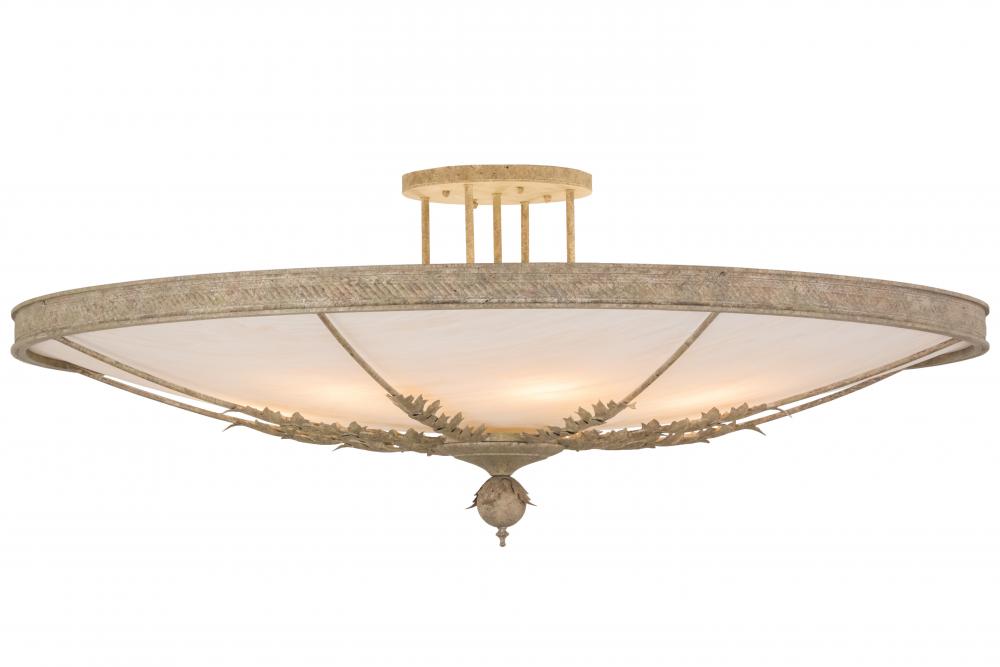Adorned with steel accents that replicate Acanthus leaves in a handsome Pate finish; this large contoured ceiling fixture features a Fleshtone Idalight shade with decorative trim; a ballpoint accent and matching hardware. This fixture is ideal for lobbies; conference rooms and other large spaces in residential and commercial settings. Hoja is handcrafted by highly skilled artisans in our 180;000 square foot manufacturing facility in Yorkville; New York. This fixture is available in a wide range of custom choices including various designs; colors; sizes and dimmable energy efficient lamping options such as LED. UL and cUL listed for damp and dry locations.