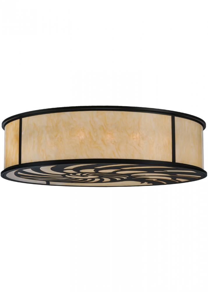 An alluring ocean Nautilus shell is depicted in a magnificent abstract design on the diffuser of this sea inspired ceiling fixture. This distinctive shade is hand crafted with enticing Sahara Taupe Idalight panels and complemented with accents and hardware finished in a stunning Blackwash. Handcrafted by highly skilled artisans in the Yorkville; New York manufacturing facility. Custom colors; designs and sizes offered. Dimmable energy efficient lamping such as LED available. UL and cUL listed for dry and damp locations.