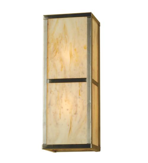 A straight line transitional motif marries a classic upright profile on this wall fixture which is framed in Stainless Steel with a Satin finish. Stunning Travertine Idalight panels offer a warm radiant look. Handcrafted by highly skilled artisans in the Yorkville; New York manufacturing facilities. Custom colors; styles; sizes and dimmable energy efficient lamping options such as LED are available. The wall fixture is UL and cUL listed for dry and damp locations.