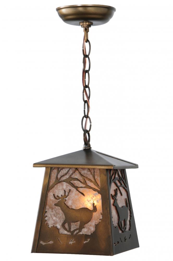 Rustic charm is captured beautifully with this striking mini pendant design of a Buck scampering through the woodlands as trees stretch towards the sky. Brilliant ambient light shines through a stunning Silver Mica diffuser which is enhanced with decorative accents; frame and matching hardware featured in an Antique Copper finish. Overall ranges from 14 to 49 inches as the chain can be easily adjusted in the field. The Deer at Dawn mini pendant is Domestically Produced in our 180;000 square foot manufacturing facility in Yorkville; New York. Customize lantern styles; metal finishes and pendant sizes to your liking. UL and cUL listed for damp and dry locations.