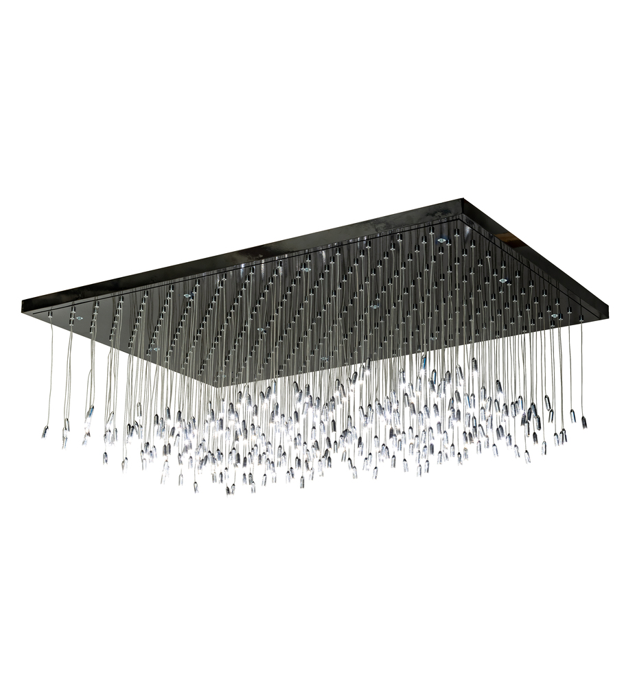 Illuminate any space with a shimmering glow like a shower of brilliant Fireflies dancing from above. Integral LEDs provide energy savings; long life and beautiful light. The rectangular canopy is featured in a Jet Black finish.This fixture is handcrafted by highly skilled artisans in our 180;000 square foot manufacturing facility in Yorkville; NY. Custom sizes and finishes available. UL and cUL listed for dry and damp locations.