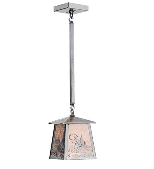 A Largemouth Bass and fisherman is depicted on each side of this lantern pendant handcrafted in the USA by Meyda artisans. This wildlife inspired fixture is finished in Steel and has Silver mica panels.