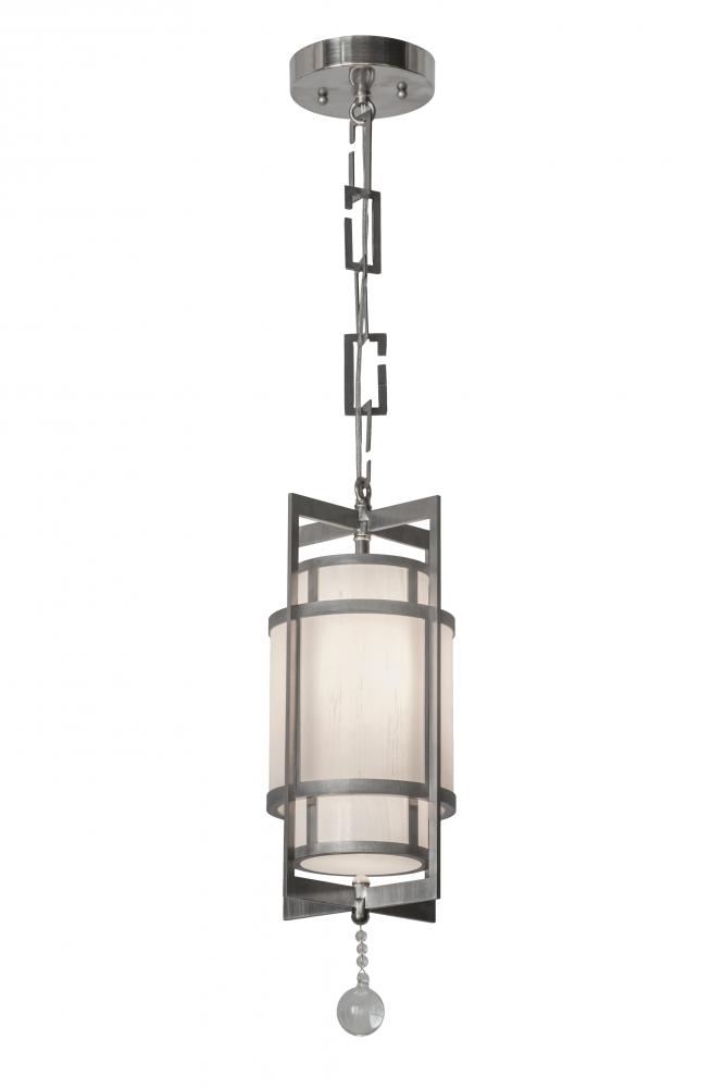 Rendering a stunning architectural look; this structural ceiling pendant features Handpainted Divinity Ivory Linen Idalight enveloping a White iridescent glass cylinder. The fixture is enhanced with a Statuario Idalight bottom diffuser with a Clear Crystal ball accent for that finishing touch. The pendant is handcrafted with decorative accents and hardware featured in Brushed Stainless Steel. Handcrafted by highly skilled artisans in our 180;000 square foot manufacturing facility in Yorkville; New York; the Raiff pendant is available in custom sizes; styles; colors and lamping options such as LED. This fixture is UL and cUL listed for dry and damp locations.