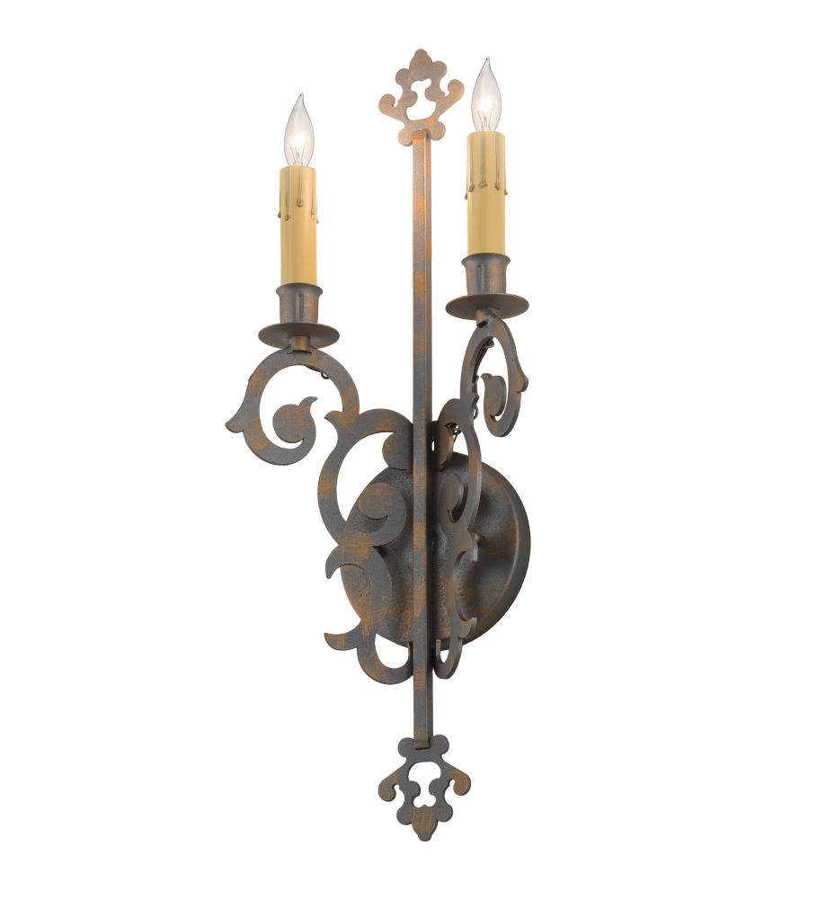 While candlelights are a metaphor for how love brightens our lives; Aneila pairs two Ivory faux candlelights topping miniature bobeches to deliver beautiful ambient illumination. This ADA Compliant wall sconce features Hand-forged Iron Scrollwork in a French Bronze finish. Custom crafted in our 180;000 square foot manufacturing facility in Yorkville; NY. Candlelight colors; metal finishes and sconce sizes can be customized. UL and cUL listed for dry and damp locations.