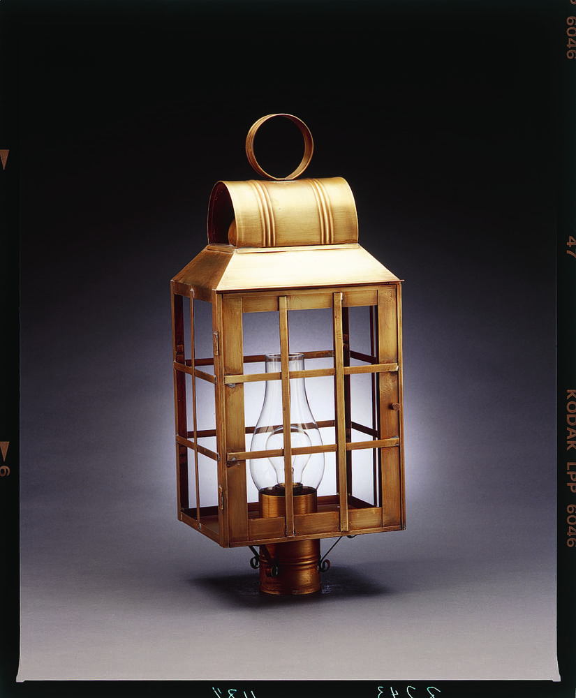Culvert Top H-Bars Post Antique Brass Medium Base Socket With Chimney Clear Glass