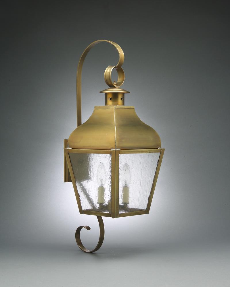 Curved Top Wall With Top Scroll Antique Brass Medium Base Socket With Chimney Clear Glass
