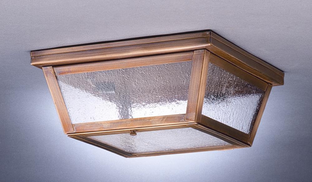 Square Flush Antique Copper 2 Candelabra Sockets Clear Seedy Glass