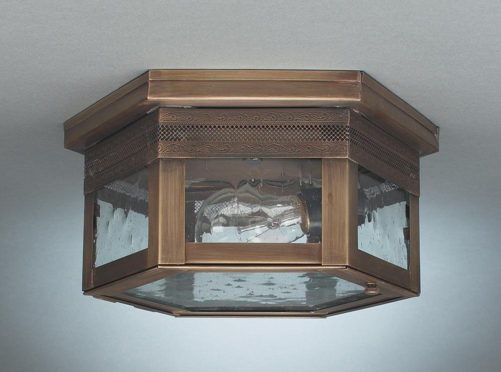 Flush Antique Brass 3 Candelabra Sockets Sockets Clear Glass