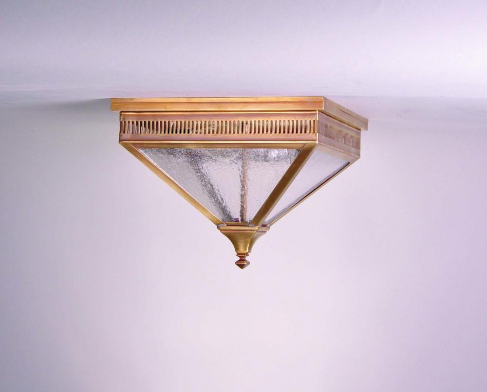Flush Antique Brass 2 Medium Base Sockets Clear Seedy Glass