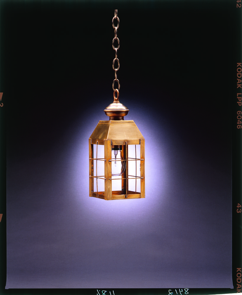 H-Rod Hanging Antique Copper 2 Candelabra Sockets Clear Seedy Glass