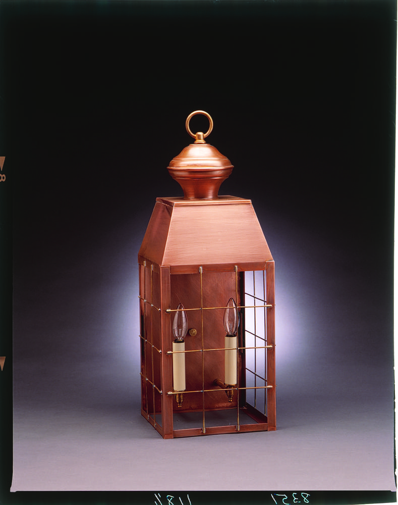 H-Rod Wall Antique Copper 2 Candelabra Sockets Clear Seedy Glass