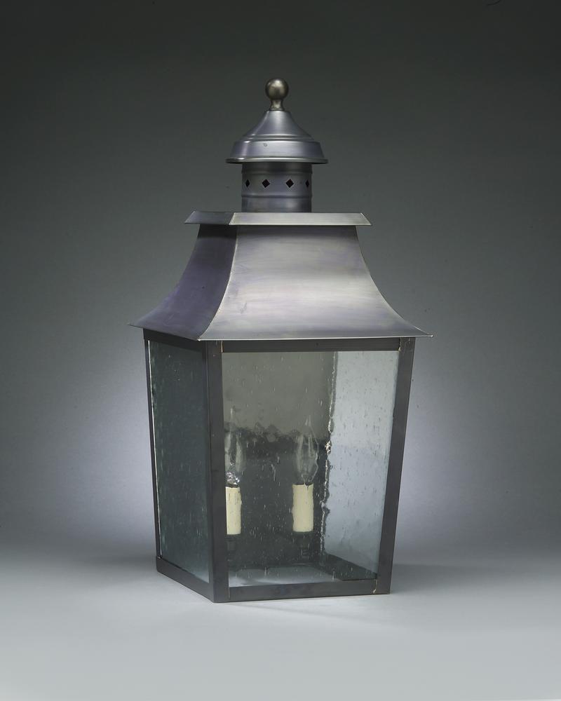 Pagoda Hanging Antique Copper 2 Candelabra Sockets Clear Seedy Glass