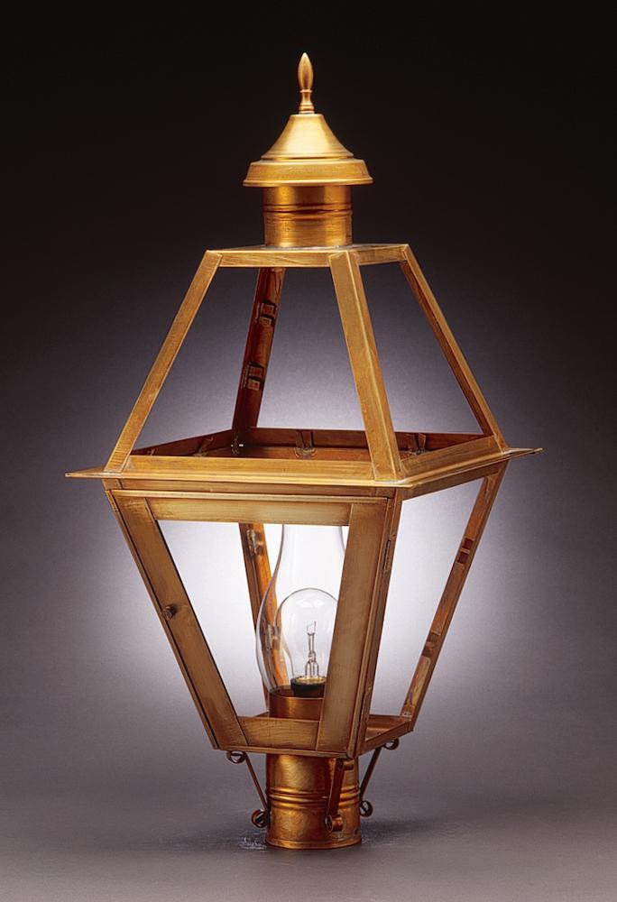 Post Antique Brass Medium Base Socket With Chimney Clear Seedy Glass