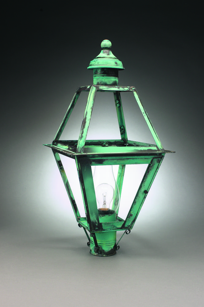 Post Antique Brass Medium Base Socket With Chimney Frosted Glass