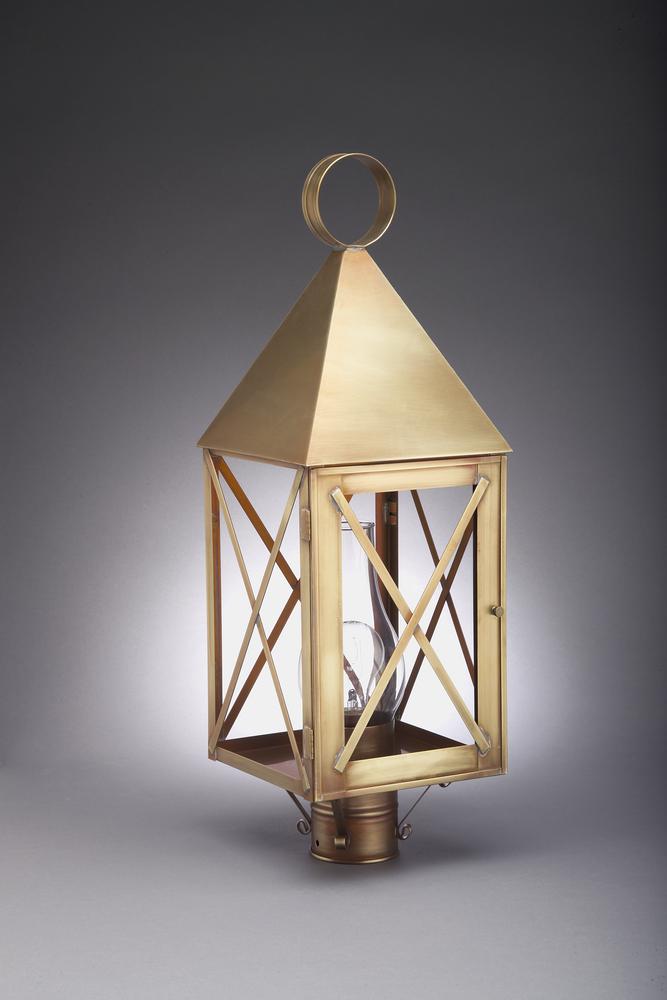 Pyramid Top H-Bars Post Antique Brass Medium Base Socket With Chimney Clear Glass