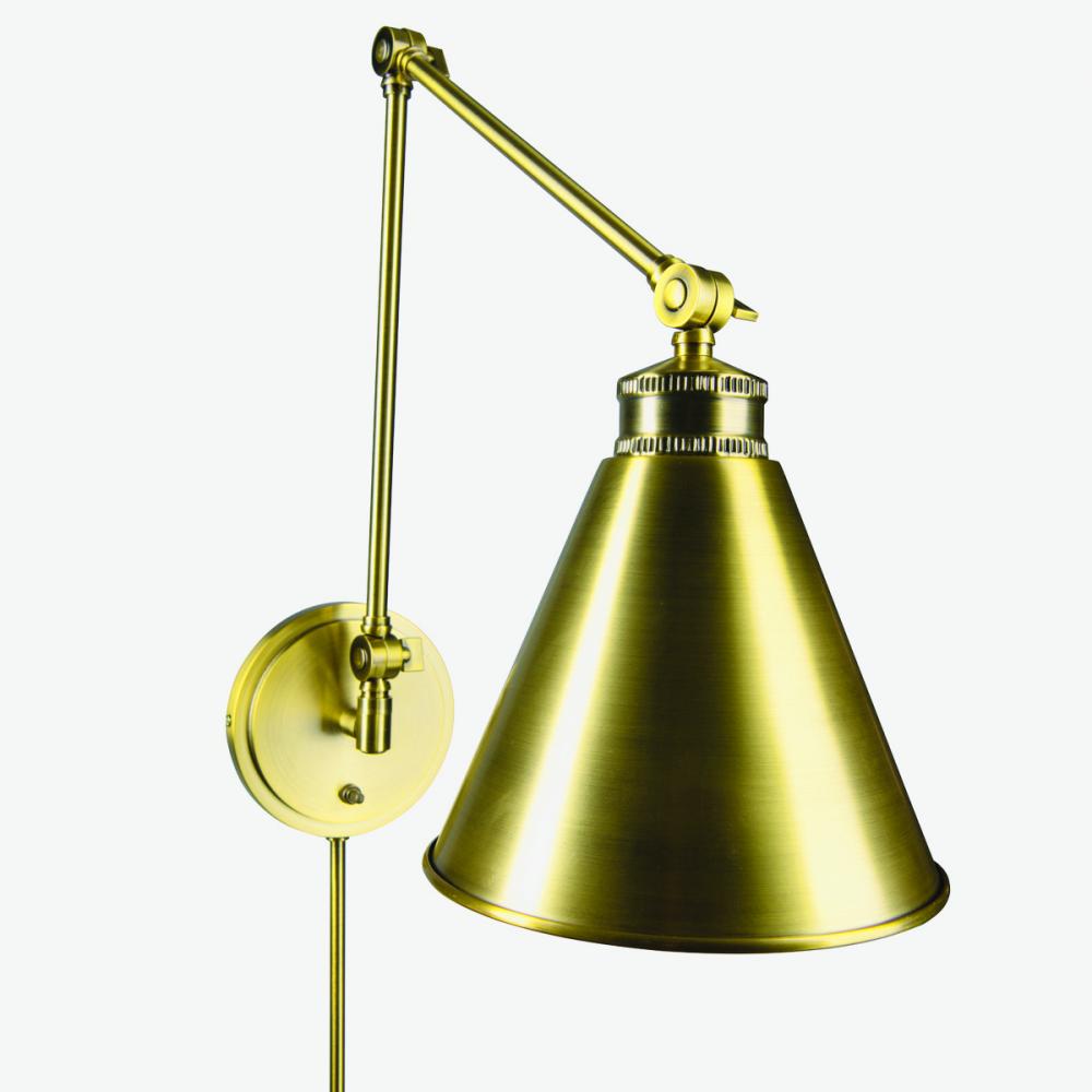 This versatile wall sconce adjusts at three different points and includes an ON/OFF switch on the backplate. This can be hardwired or plugged into the wall.