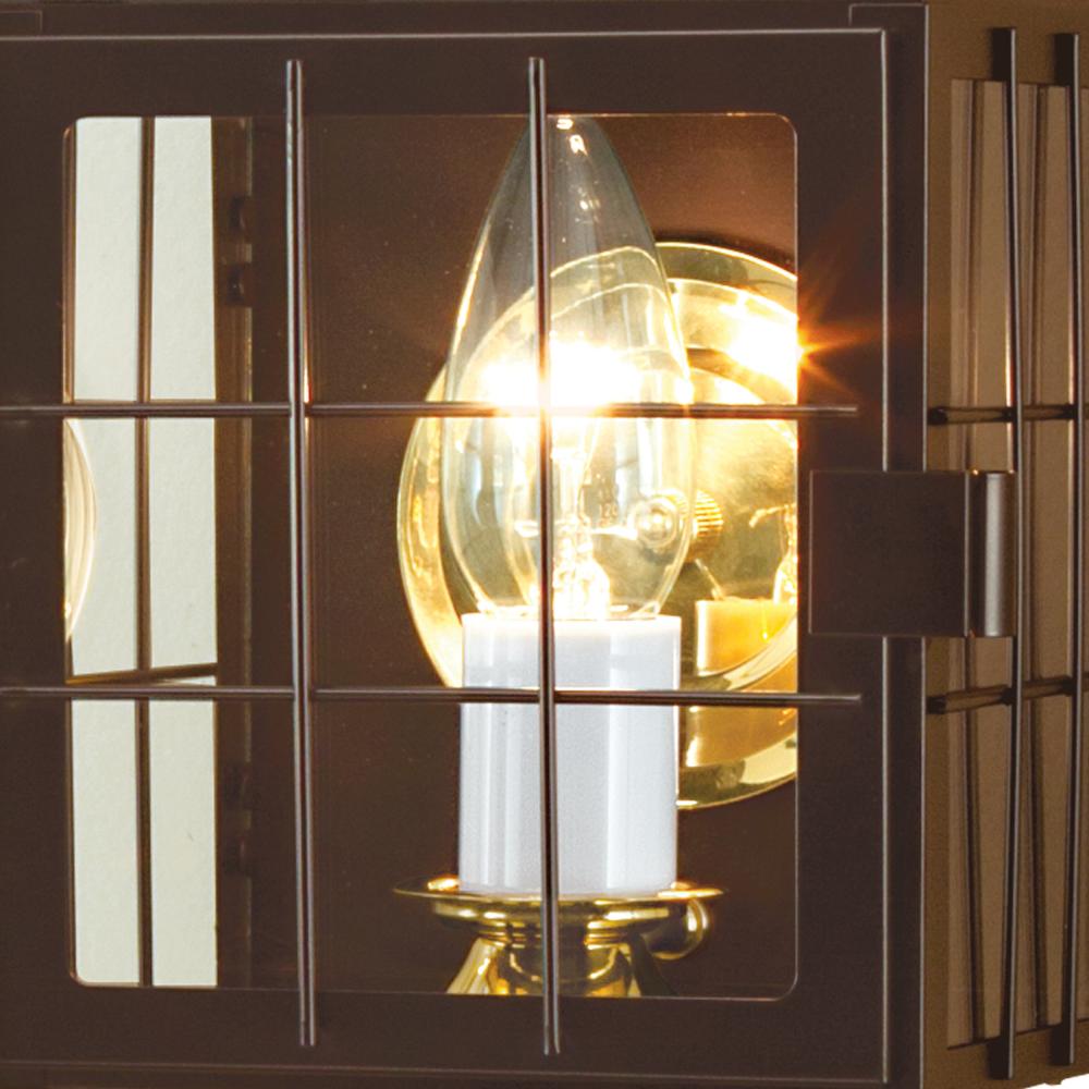 Inspired by the traditional style of colonial New England, the small Heritage outdoor lantern allows for classic colonial homes to add the perfect architectural detail to their exteriors. The rectangular lantern features soldered grid work and a visible lamp providing historic flair to any number of outdoor spaces.