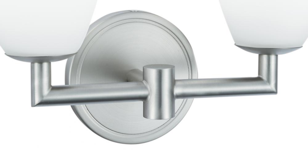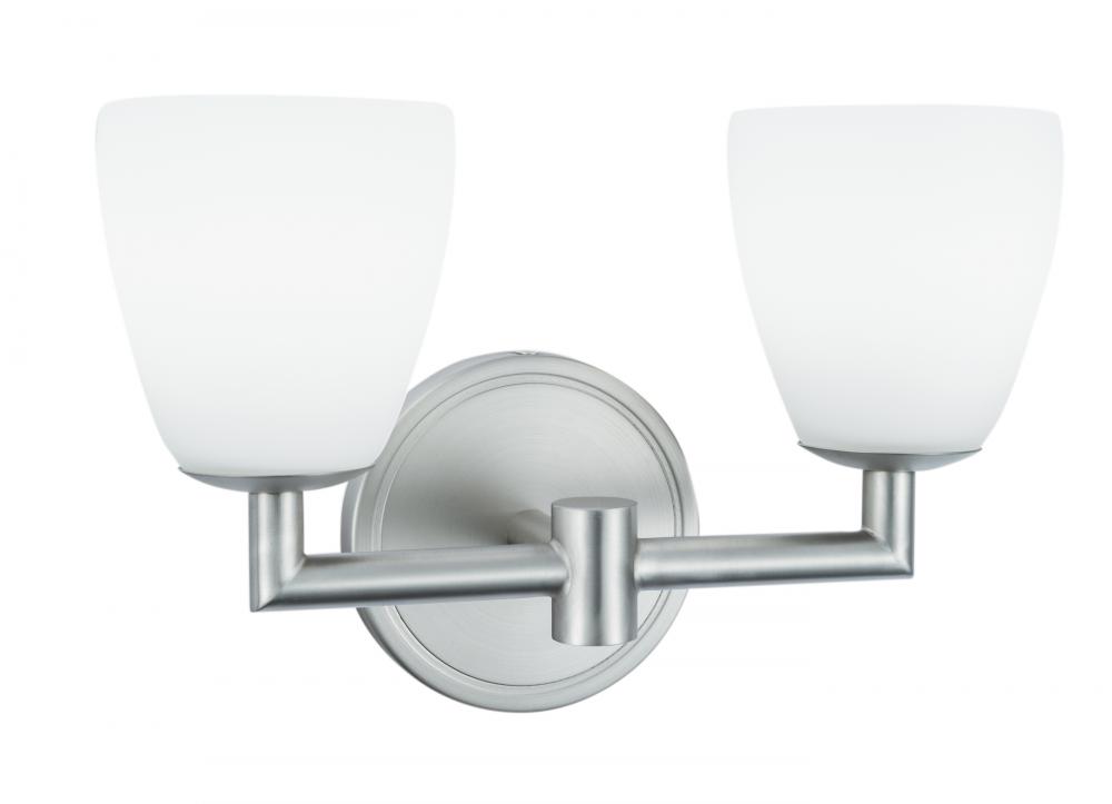 In this variation of Norwell’s LED Chancellor fixture, two lights balance the circular backplate with two tubular arms providing more illumination. The curved glass shades, disperse light evenly and cleanly.