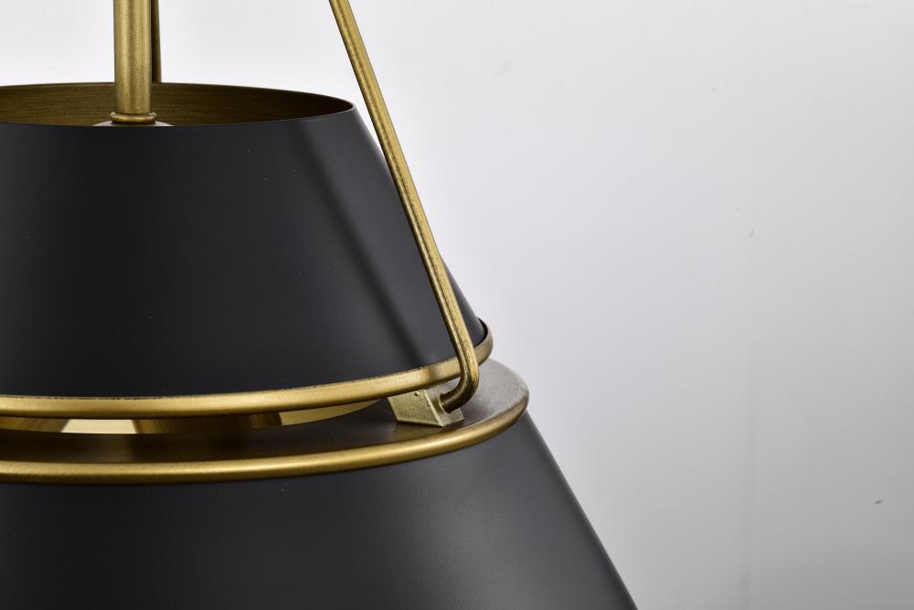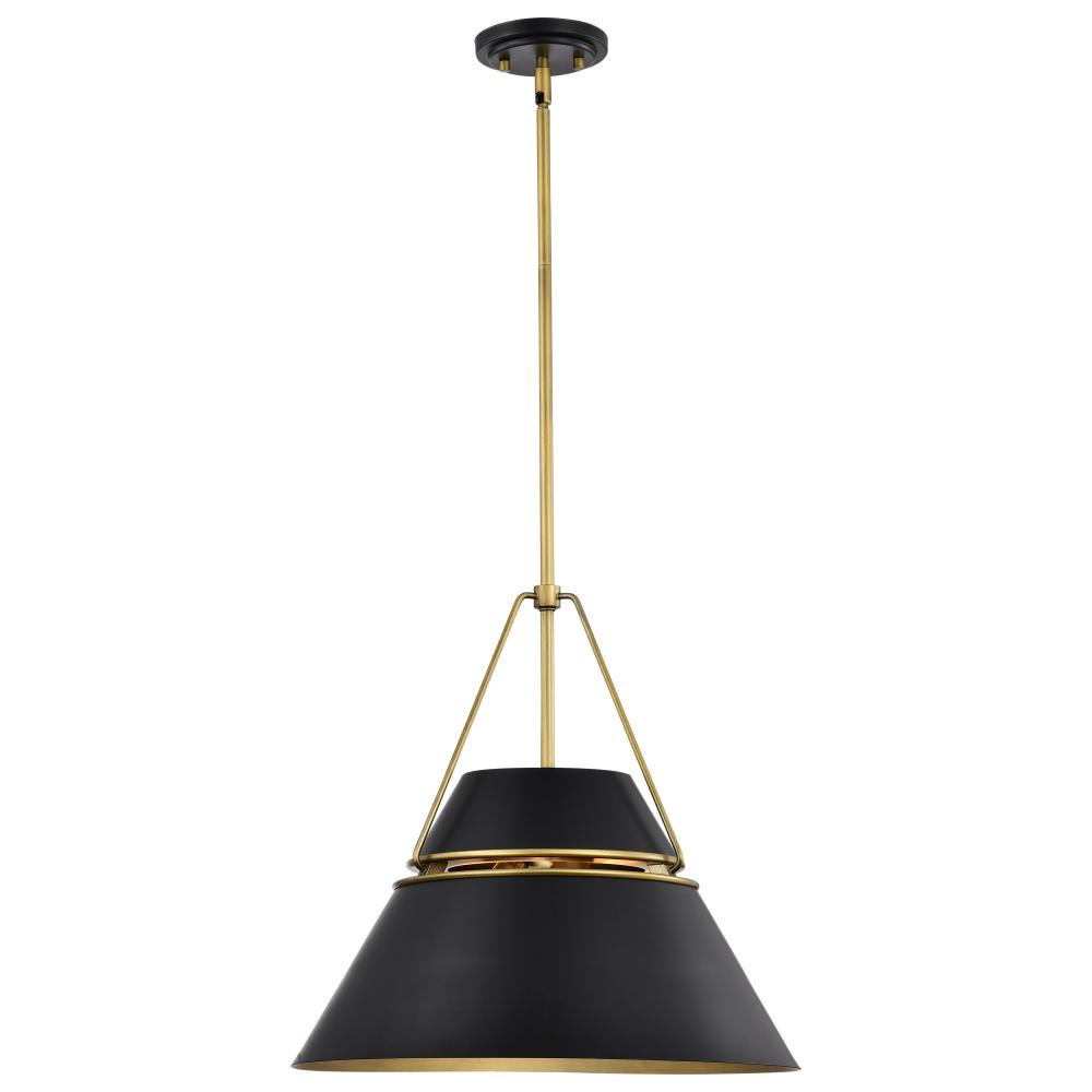 Adina 3 Light Large Pendant; Matte Black and Natural Brass Finish