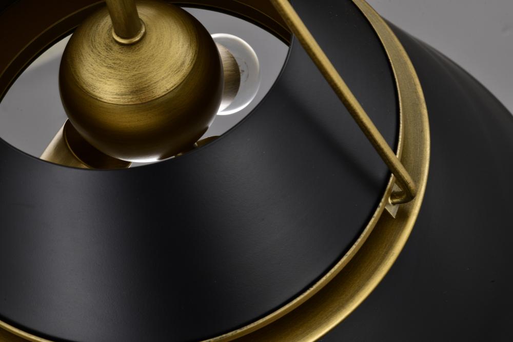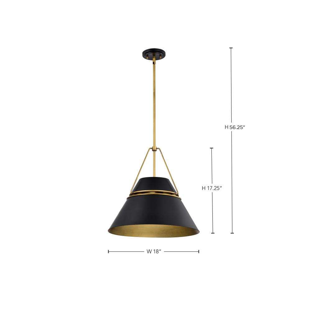 A stunning large-sized pendant that blends contemporary style with streamlined design elements, Adina 60-7768, is effortless lighting at it's finest. Complimented with natural brass accents, the matte black finish is sleek, showcasing its clean lines.