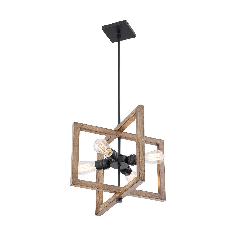 Beacon - 4 Light Small Pendant - Black and Honey Wood Finish