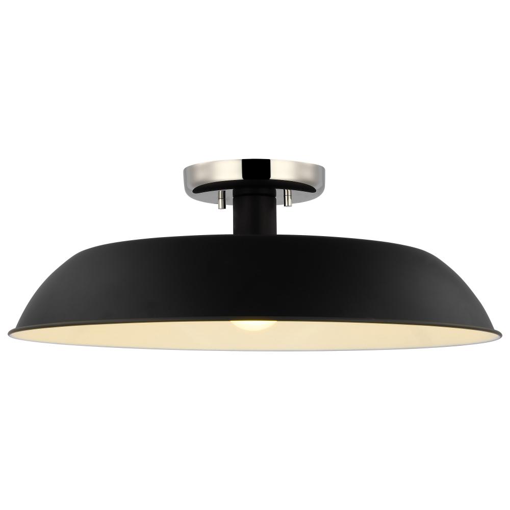 Colony; 1 Light; Medium Semi-Flush Mount Fixture; Matte Black with Polished Nickel