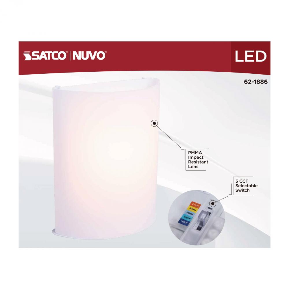 The SATCO NUVO 62-1886 Crispo Wall Sconce in All White delivers sleek, modern lighting with 5 CCT selectable technology (2700K–5000K) and 90 CRI illumination for vibrant color rendering. This 10-watt fixture replaces 80W incandescent lighting, offering e