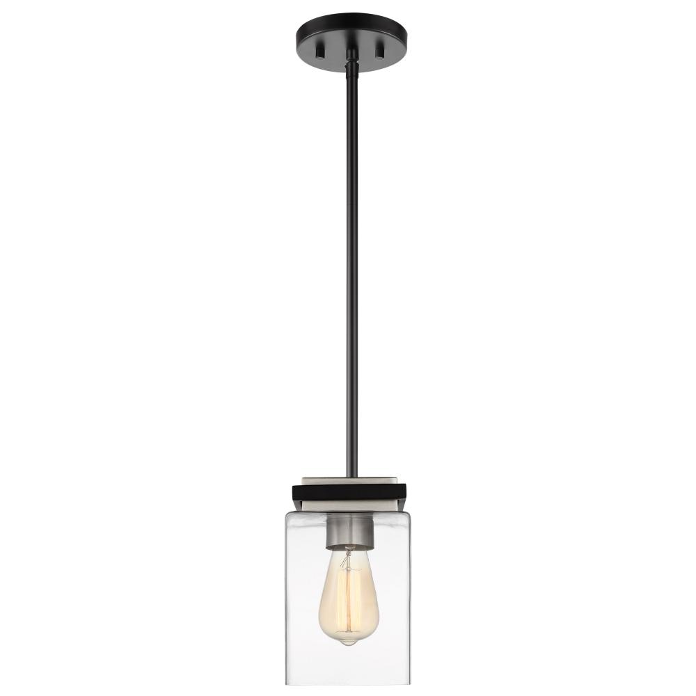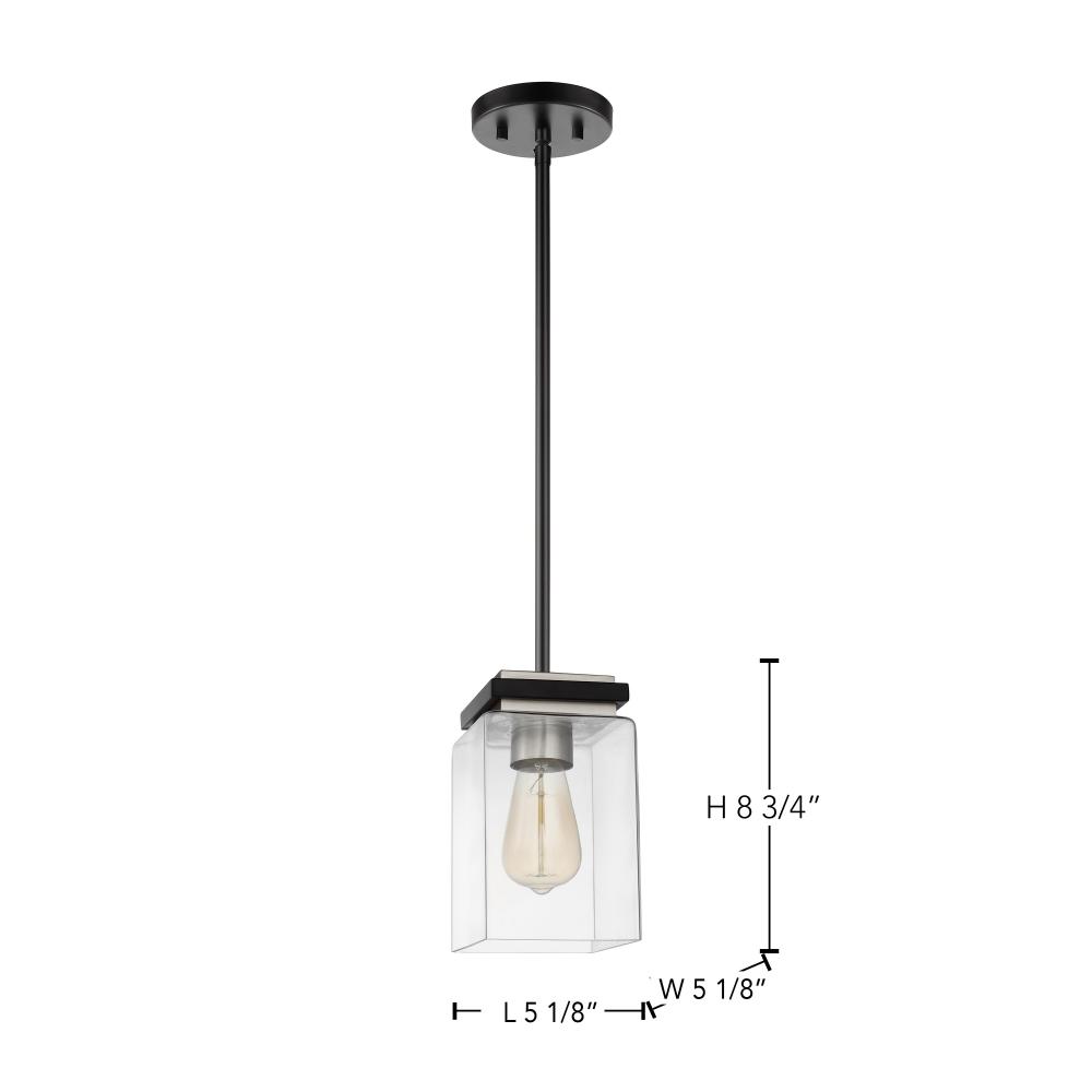 A combination of glass and metal comes together to create the stunning design of the Crossroad 60-7650 mini pendant. The square, clear glass shades showcase the bulbs. The socket and base are finished in brushed nickel to contrast beautifully with the matt
