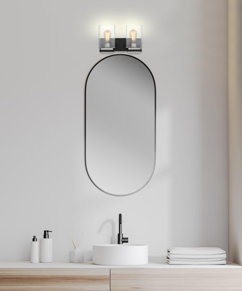 Crossroads; 2 Light Vanity; Matte Black with Clear Glass