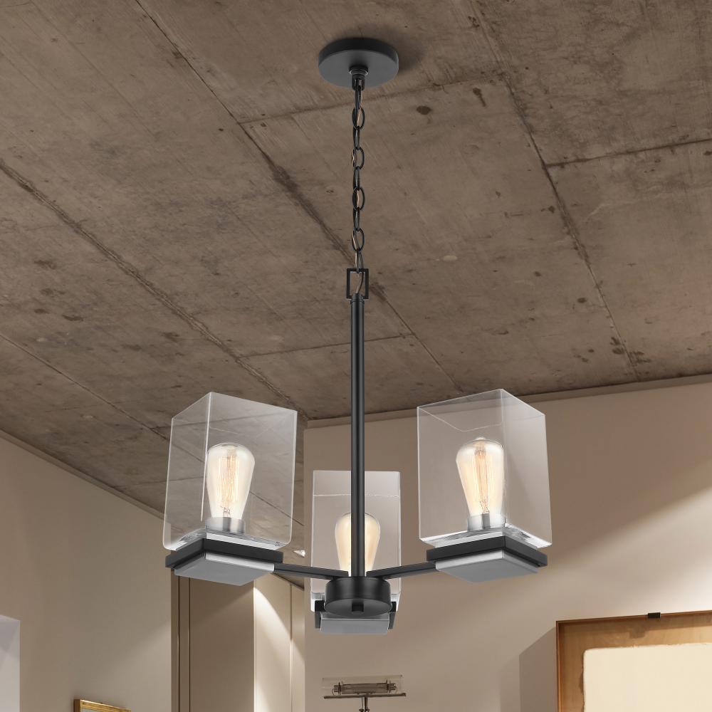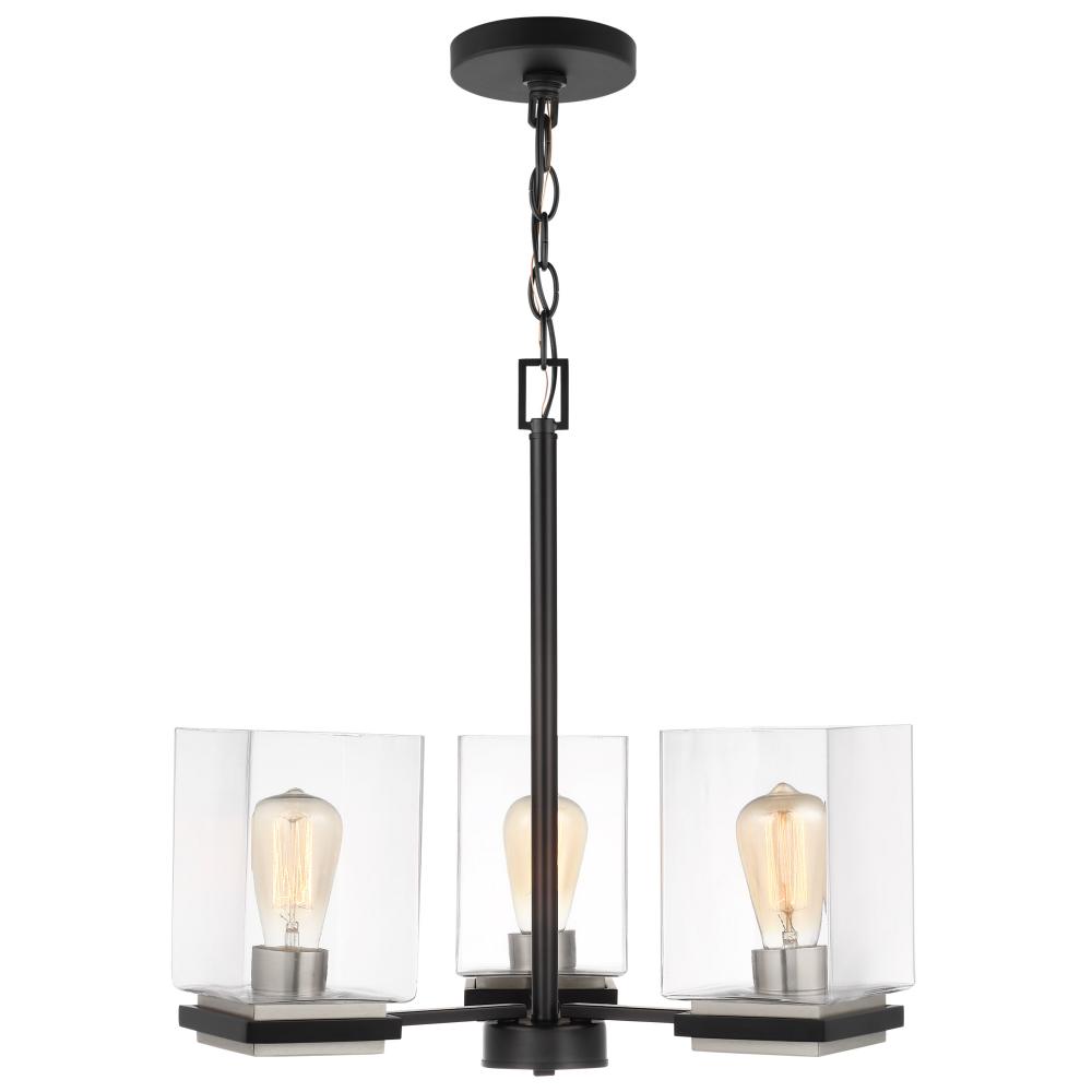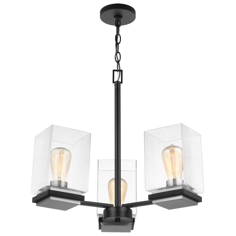 Crossroads; 3 Light Chandelier; Matte Black with Clear Glass
