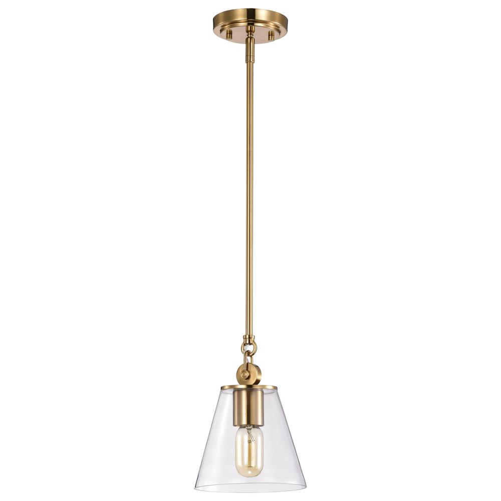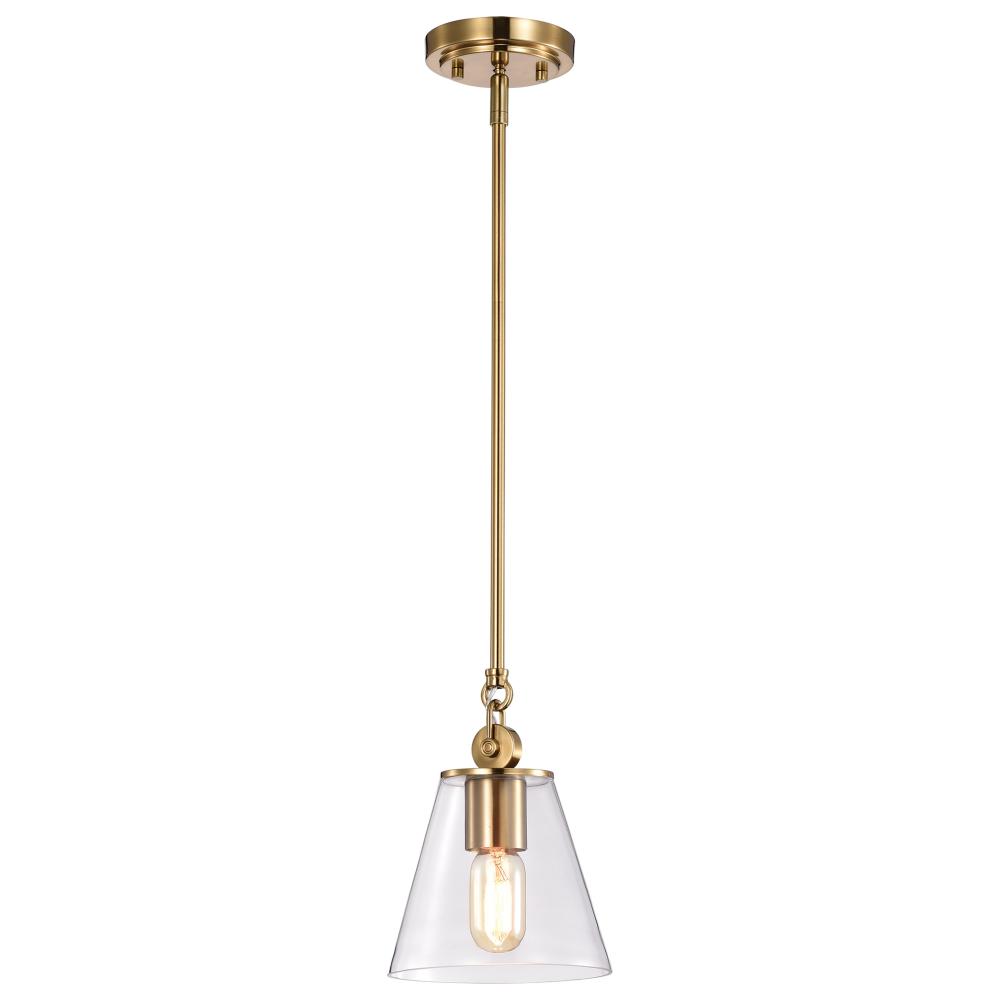With subtle detailing, the Dover mini pendant is graceful yet unassuming. The simple clear glass shade features trim finished in vintage brass to match the fixture's body. Place a trio of them over the kitchen island for added light or over nightstands