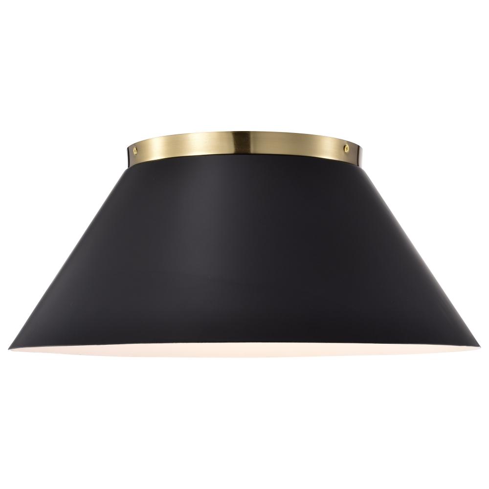 With subtle detailing, the Dover large flush mount is graceful yet unassuming. The simple black shade features a white lining to reflect the light, and the trim is finished in vintage brass to match the fixture's body. Place over a table in an eat-in k