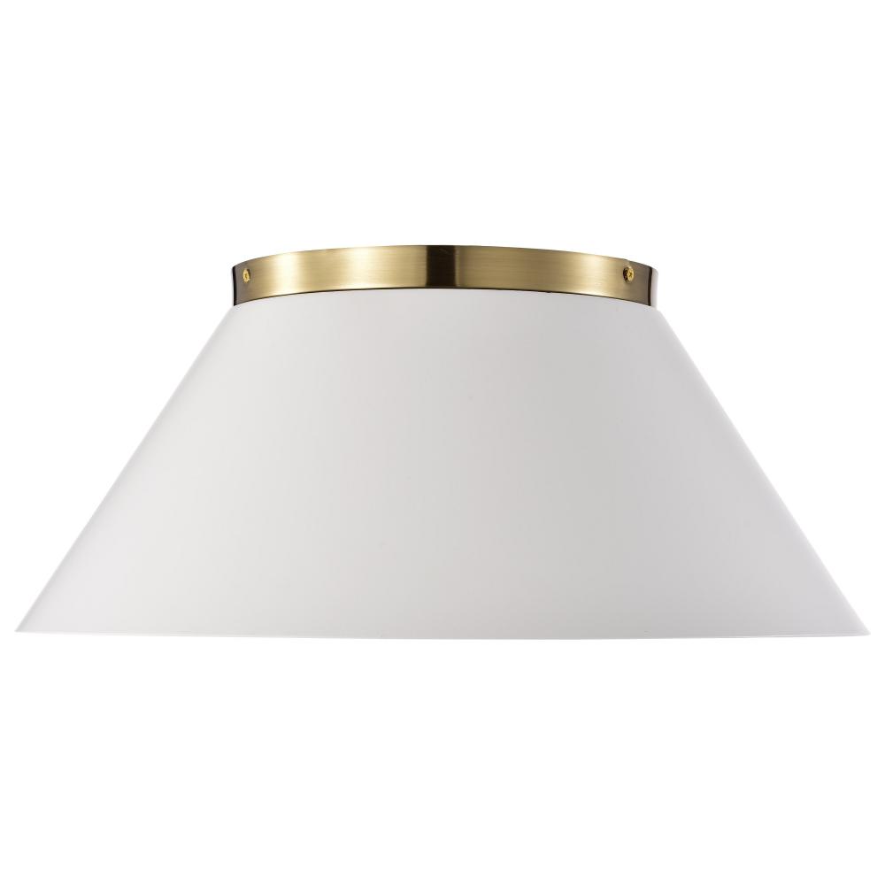 With subtle detailing, the Dover large flush mount is graceful yet unassuming. The simple white shade features a white lining to reflect the light, and the trim is finished in vintage brass to match the fixture's body. Place over a table in an eat-in k
