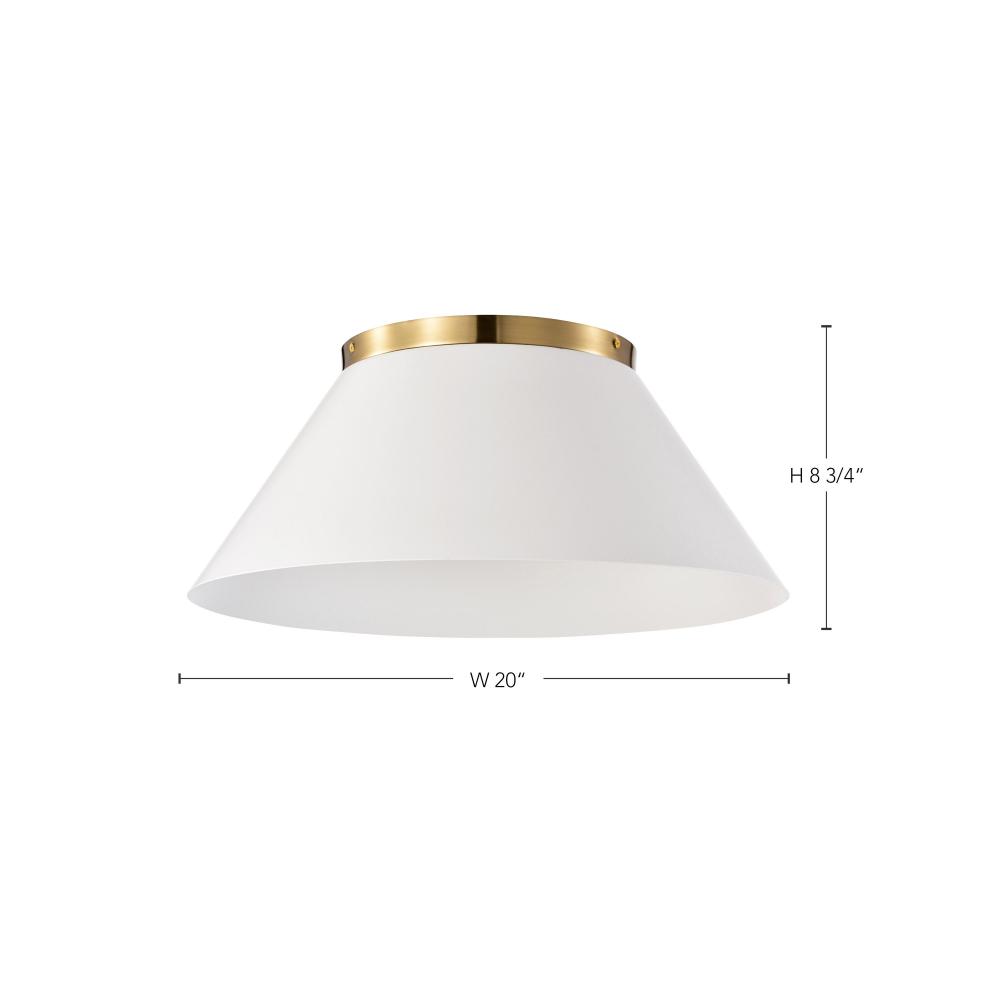 Dover; 3 Light; Large Flush Mount; White with Vintage Brass