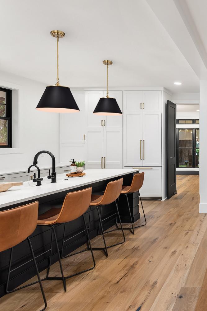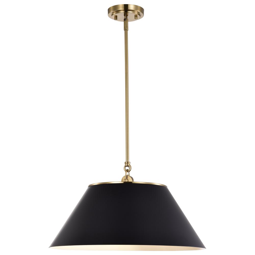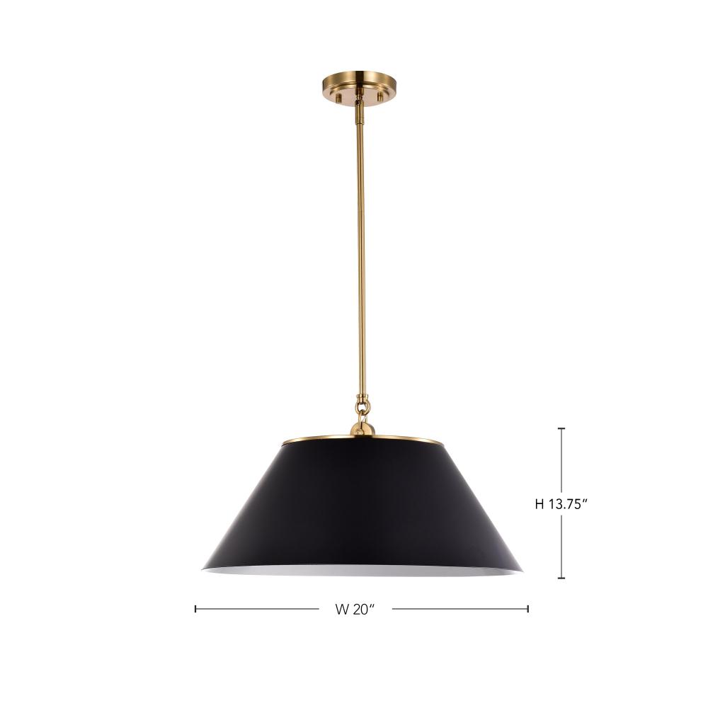 With subtle detailing, the Dover large pendant is graceful yet unassuming. The simple black shade features a white lining to reflect the light, and the trim is finished in vintage brass to match the fixture's body. Place a trio of them over the kitchen
