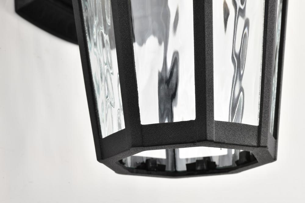 East River LED 6.25-inch small outdoor wall lantern finished in matte black with clear water glass, Smart Starfish enabled, featuring Color and White tunable CCT Selectable