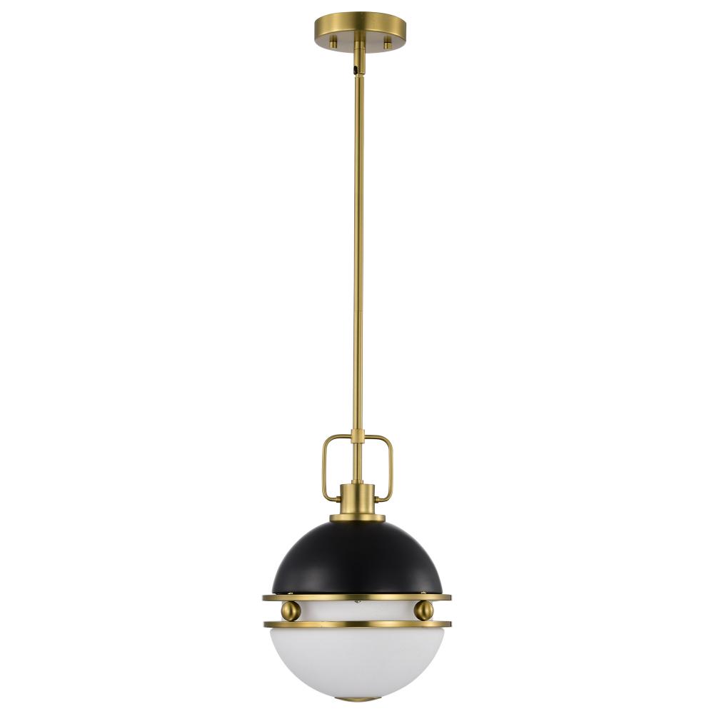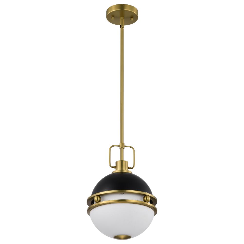 Modern illumination with beautiful, subtle details, elevates the Everton 60-7876 small pendant's style to grand heights. With spherical, opal etched glass softly diffusing the light, creating a warm and inviting glow. A brass finish is paired with a ma