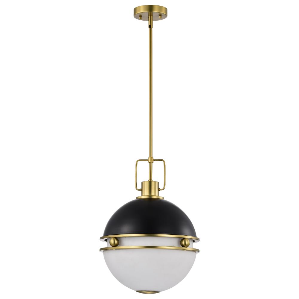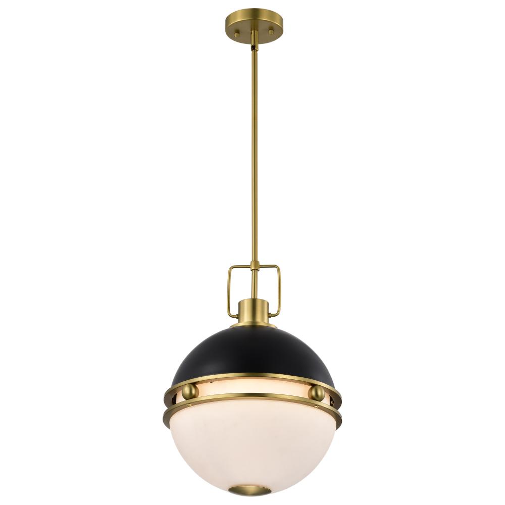 Modern illumination with beautiful, subtle details, elevates the Everton 60-7878 medium pendant's style to grand heights. With spherical, opal etched glass softly diffusing the light, creating a warm and inviting glow. A brass finish is paired with a m