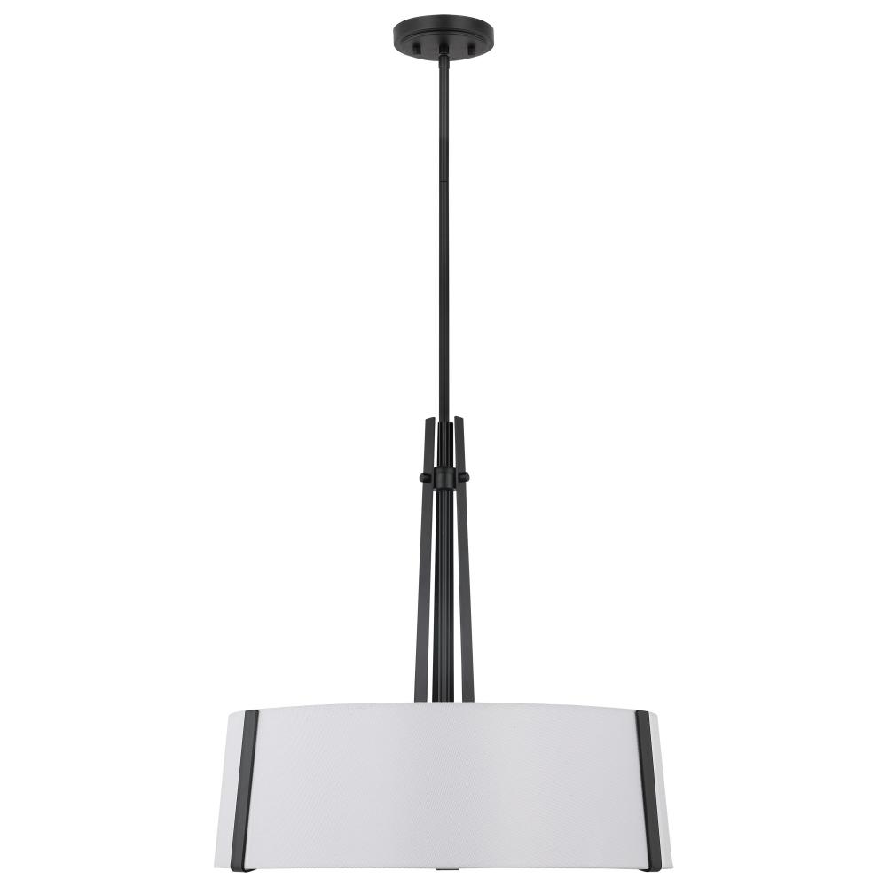 A modest framework of metal and textile fabric unites to bring great style to your homes lighting with the Flynn 60-7678 pendant. Its simplicity is enhanced with a black finish, and a white textile shade rests within the fixture arms providing plenty of il