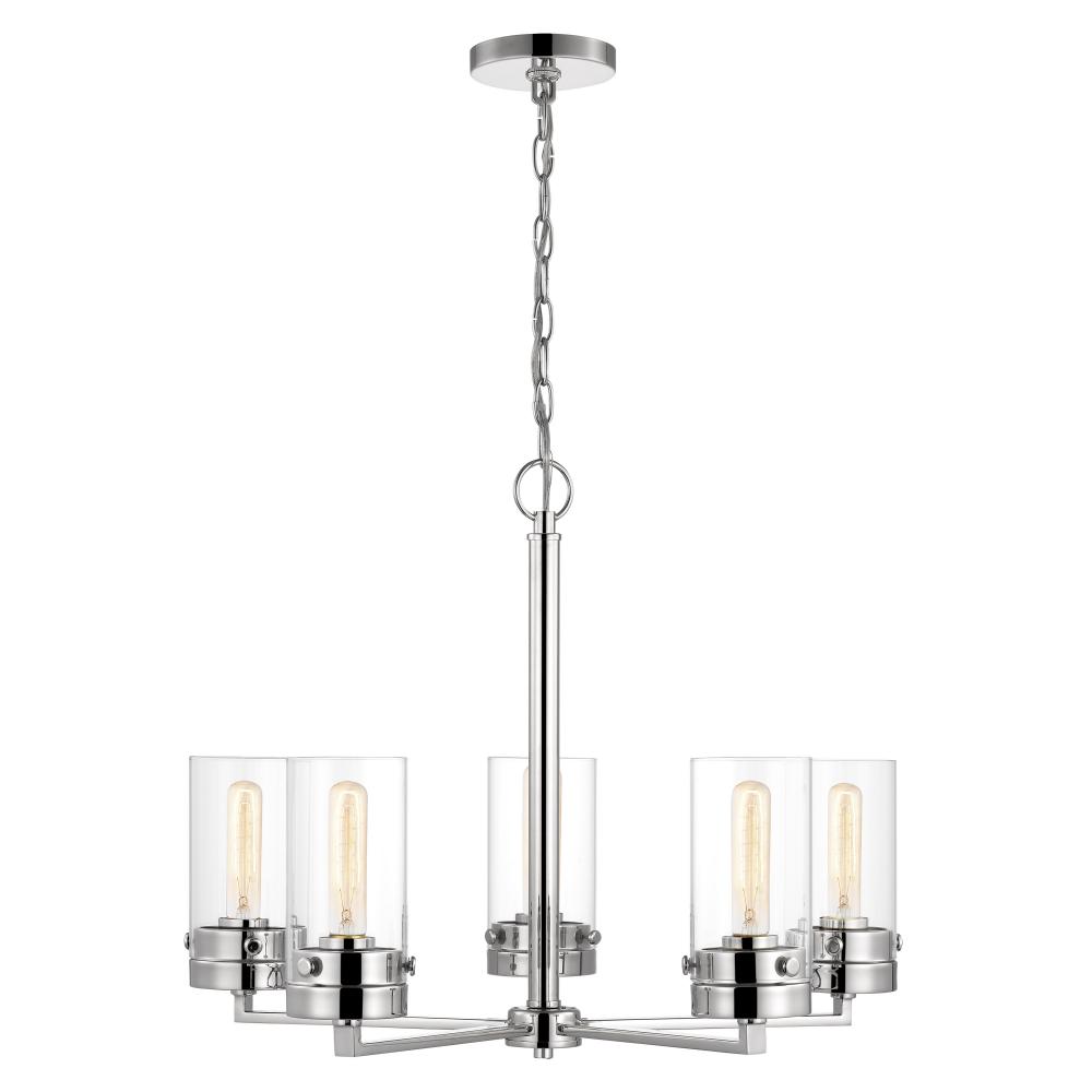 Intersection; 5 Light; Chandelier; Polished Nickel with Clear Glass