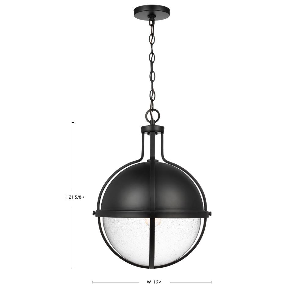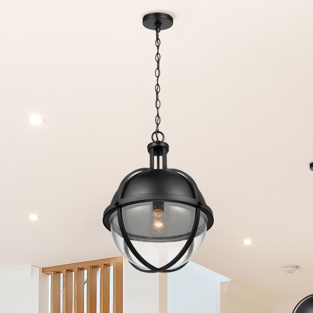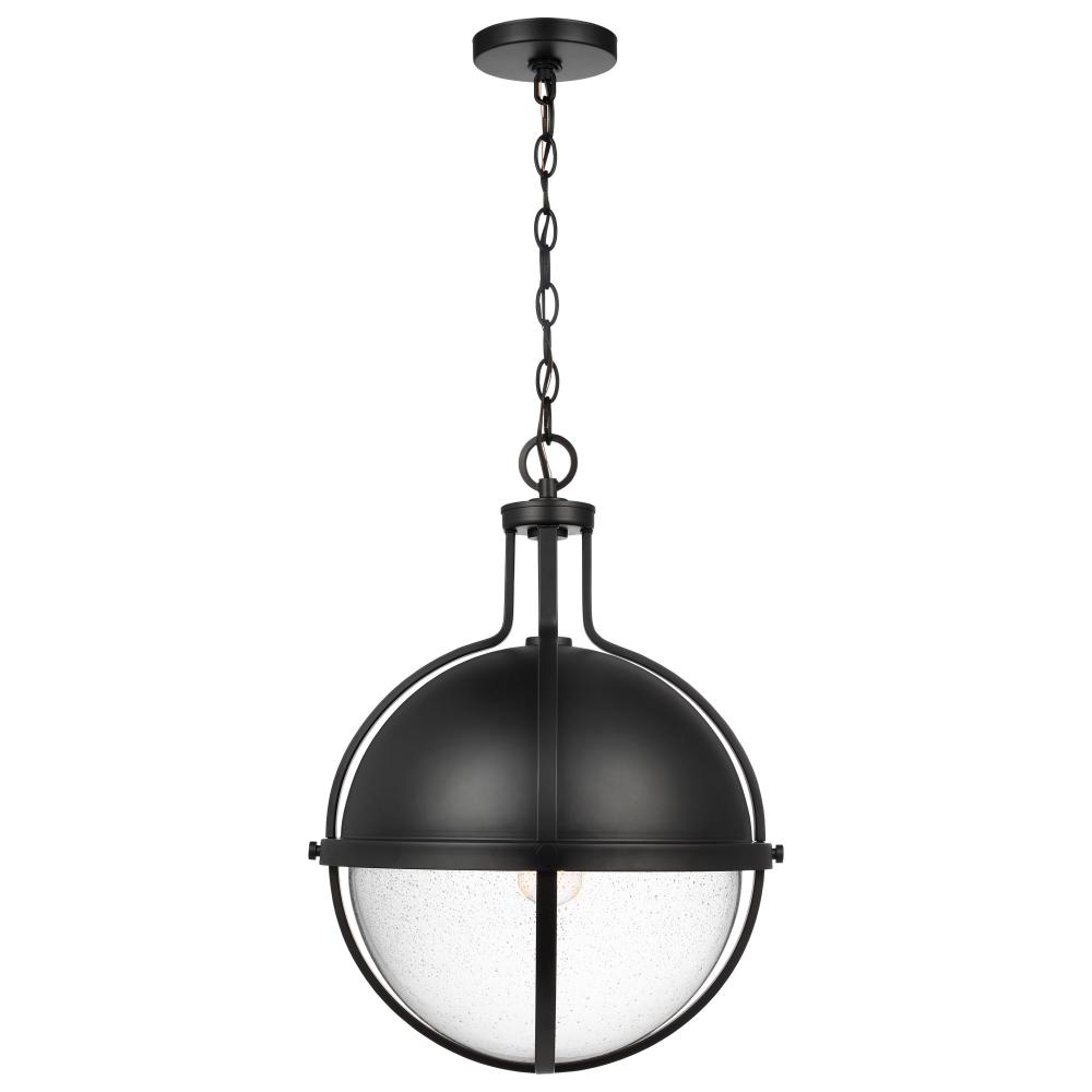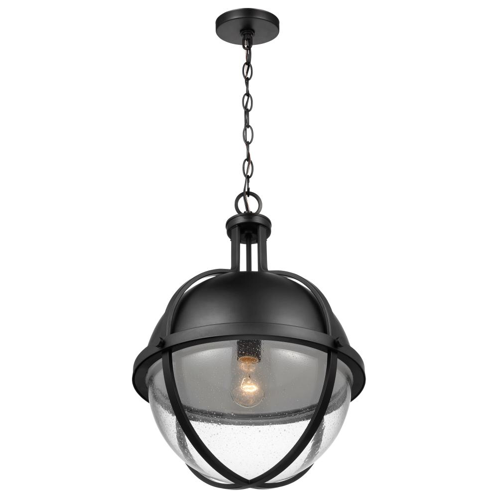 Lincoln; 1 Light Large Pendant; Medium Base; 60 Watt; Matte Black Finish; Clear Seeded Glass