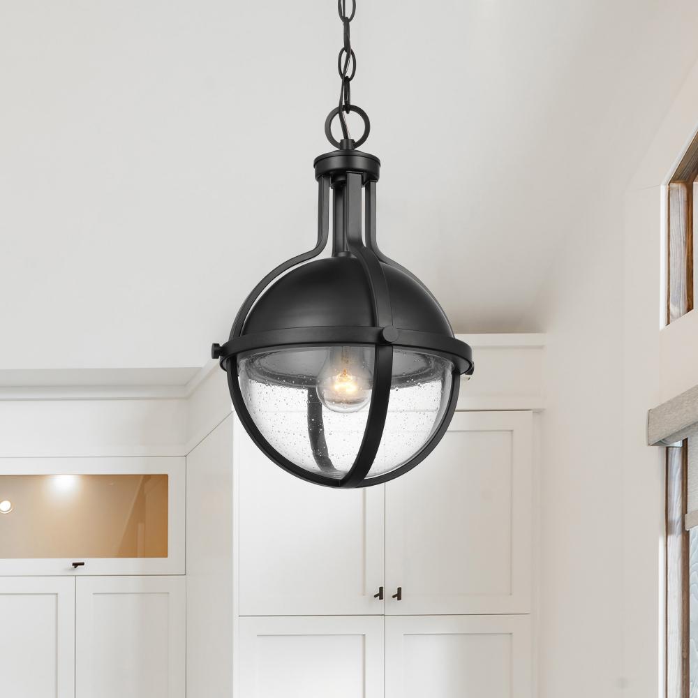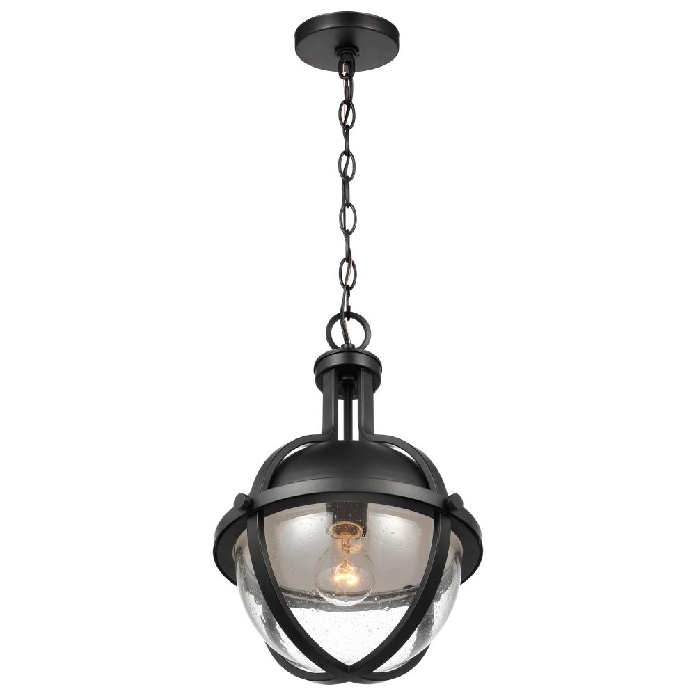 Lincoln; 1 Light Medium Pendant; Medium Base; 60 Watt; Matte Black Finish; Clear Seeded Glass