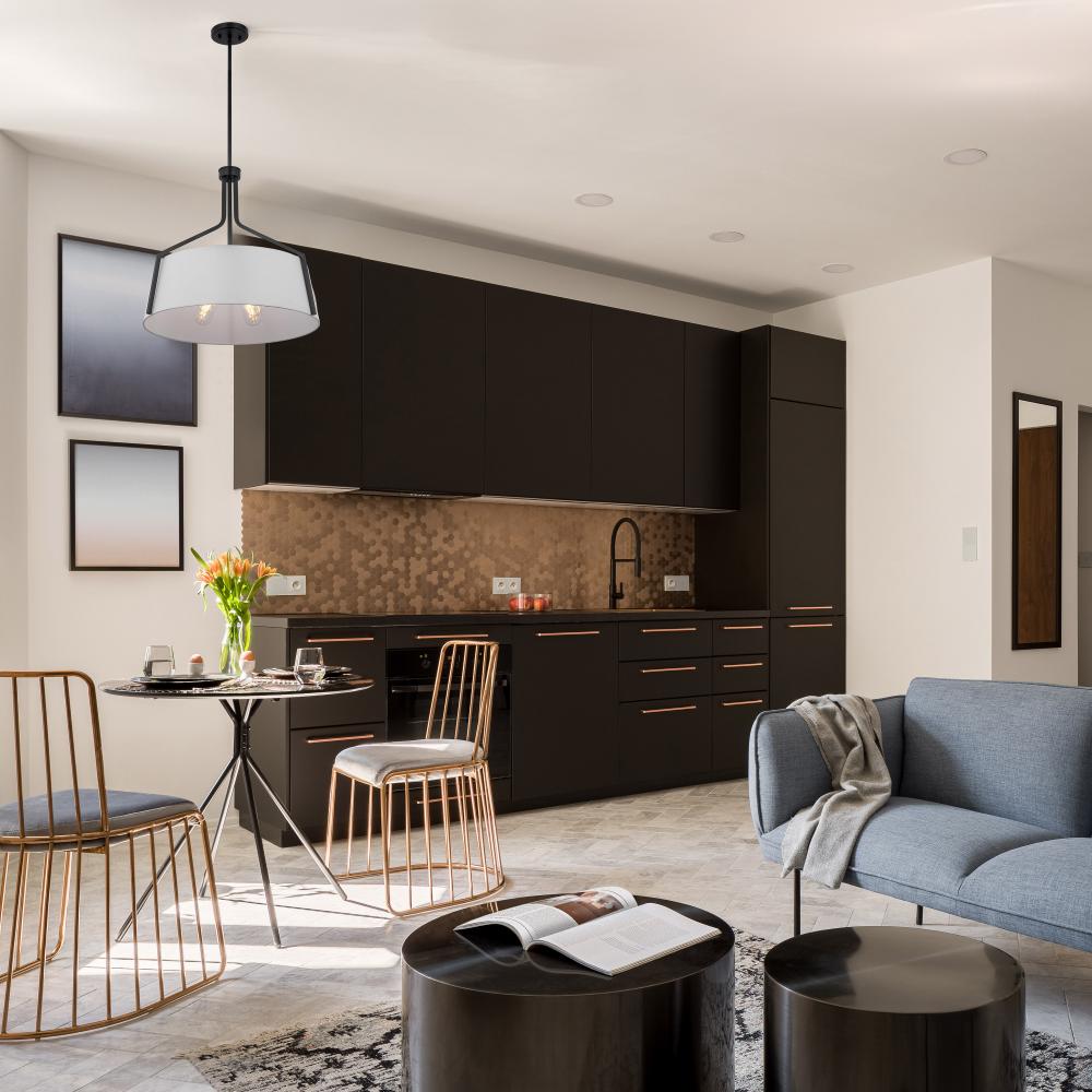 A modest framework of metal and linen fabric unites to bring great style to your homes lighting with the Livingston pendants. Its simplicity is enhanced with your choice of two versatile finishes to choose from, putty gray or matte black. A white linen sha