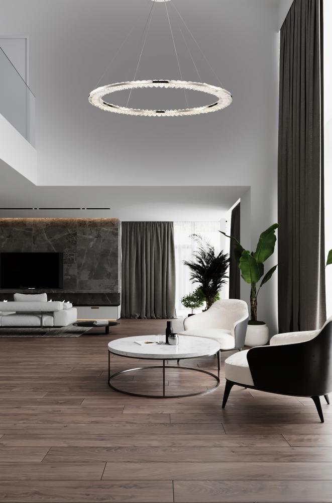 Encounter the Nova 62-2447 LED round pendant, where contemporary crystal design meets classic elegance. Crafted with luxurious K9 crystal, each piece shines with exquisite clarity, casting a radiant glow throughout your space. Finished in polished nickel,