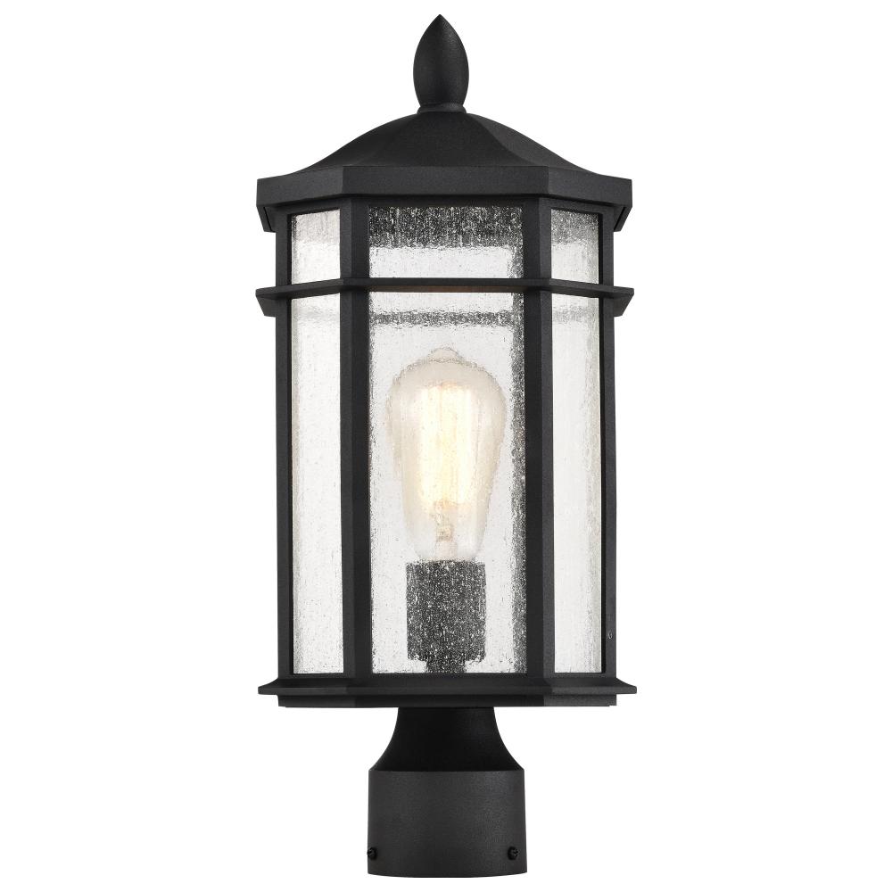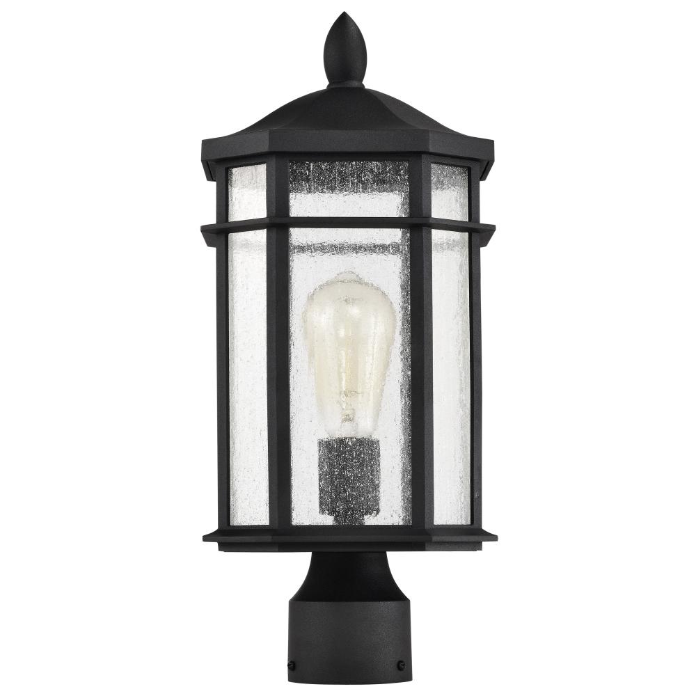 The Raiden 60-5758 Outdoor Post Light features a traditional design yet is suited to today's contemporary lighting styles. The clear seeded glass delivers an aged patina softly illuminated by the bulb. The matte black finish showcases the fixture's