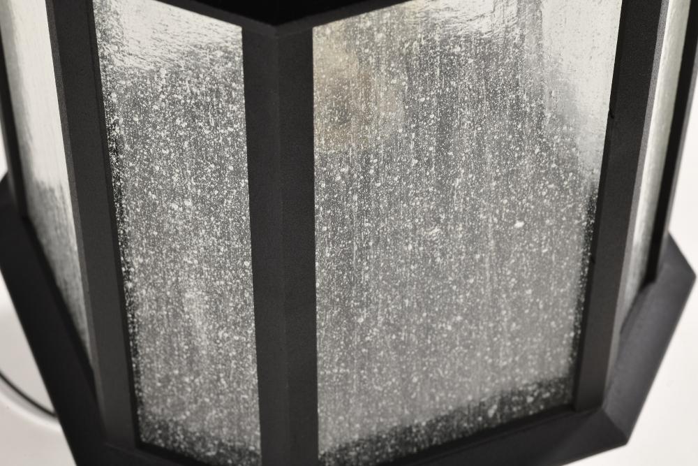 The Raiden Collection features a traditional design yet is suited to today's contemporary lighting styles. The clear seeded glass delivers an aged patina softly illuminated by the bulb. The matte black finish showcases the fixture's structure and w