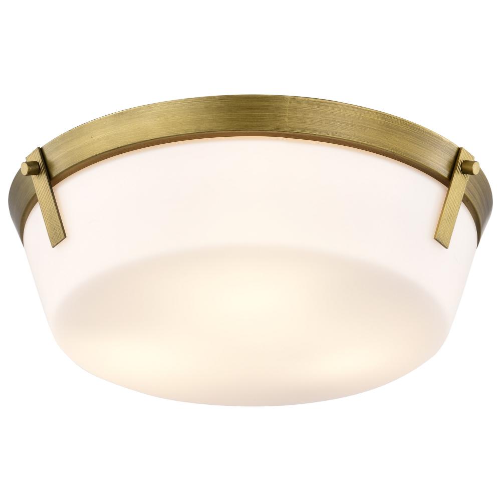 Rowen 3 Light Flush Mount; Natural Brass Finish; Etched White Glass
