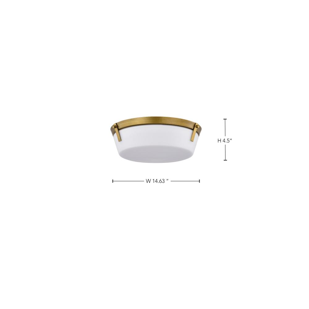 Rowen 4 Light Flush Mount; Natural Brass Finish; Etched White Glass