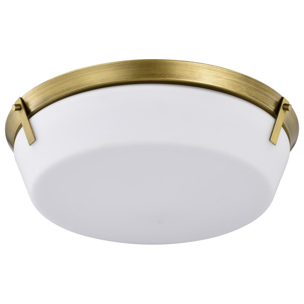 The Rowen 60-7751 flush mount is a versatile lighting fixture that exudes elegance and sophistication. The natural brass finish gives the fixture a warm and inviting look, while the etched white glass diffuses the light to create a soft and ambient glow. P